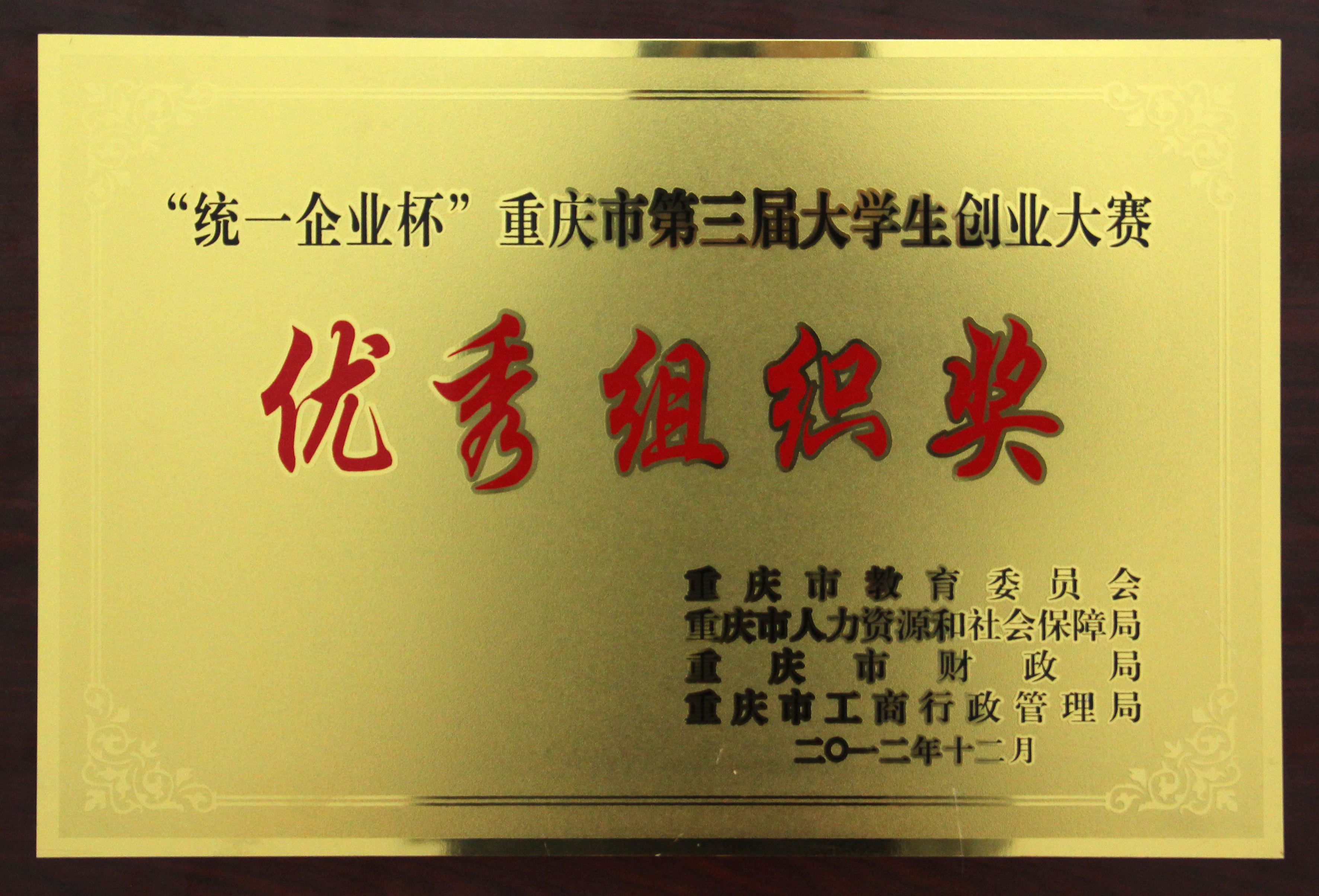 重庆市第三届老员工创业大赛优秀组织奖