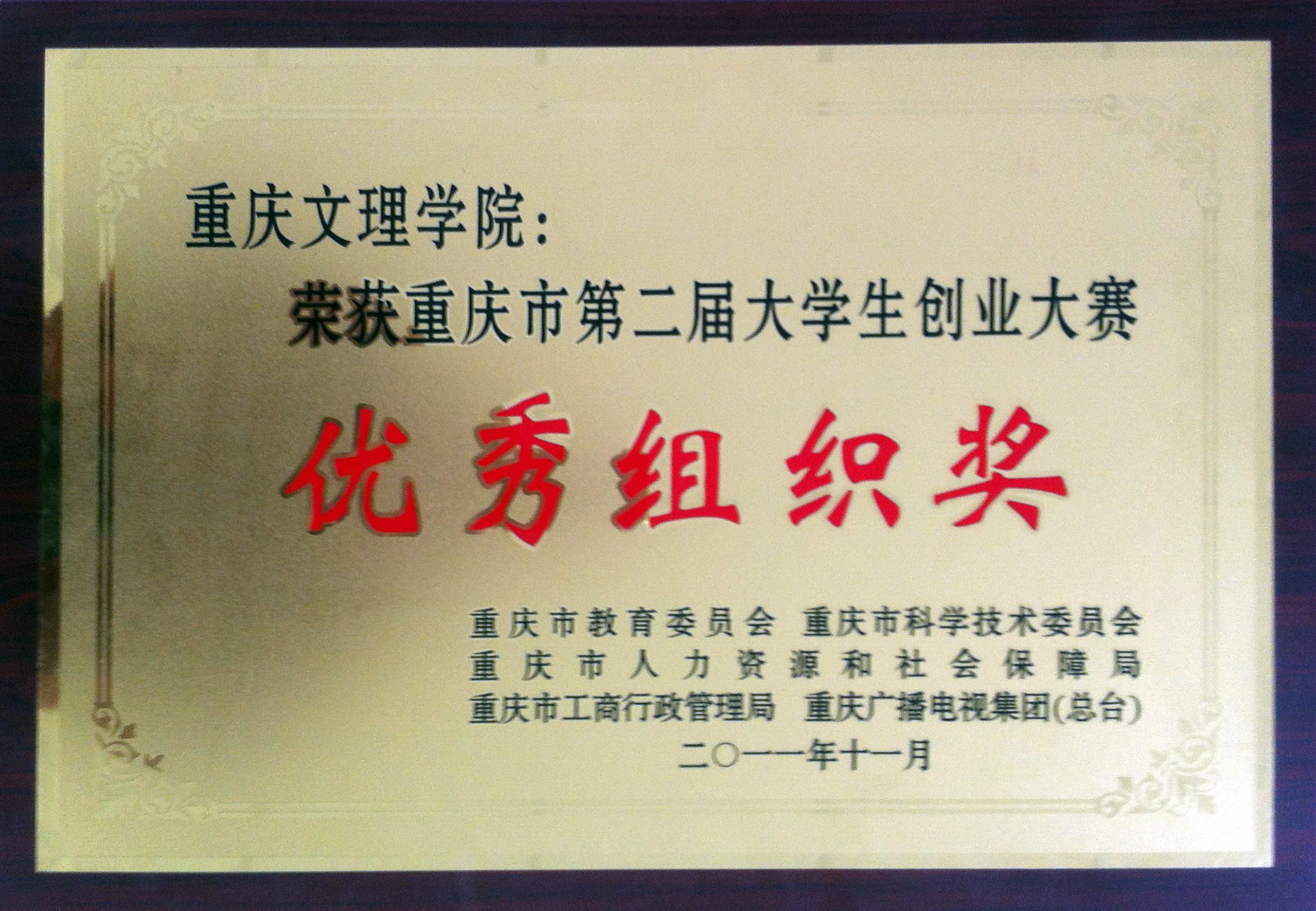 重庆市第二届老员工创业大赛优秀组织奖