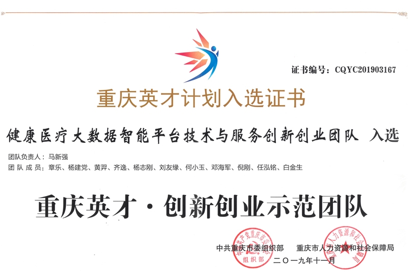 “重庆英才计划”创新创业示范团队荣获情况