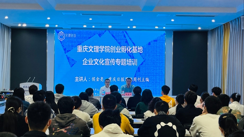 5月14日上午,学院在创业孵化基地多功能厅举行企业文化宣传专题培训会。重庆日报思想周刊主编、主任编辑侯金亮莅临指导,文理创谷全体在孵企业负责人参加此次培训会,活动由明陞m88官方网站经理陈盛兴主持。