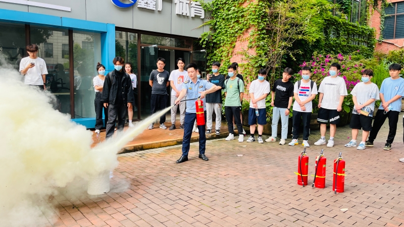 随后,陶泓宇现场演示灭火器的使用方法和步骤,并组织参训师生进行了灭火实战演练,同学们踊跃参与现场实际操作,较好地掌握了灭火器的操作步骤和使用方法。最后,陶泓宇对本次消防培训与实战演练作了总结,强调“生命没有彩排,安全重在防范”。