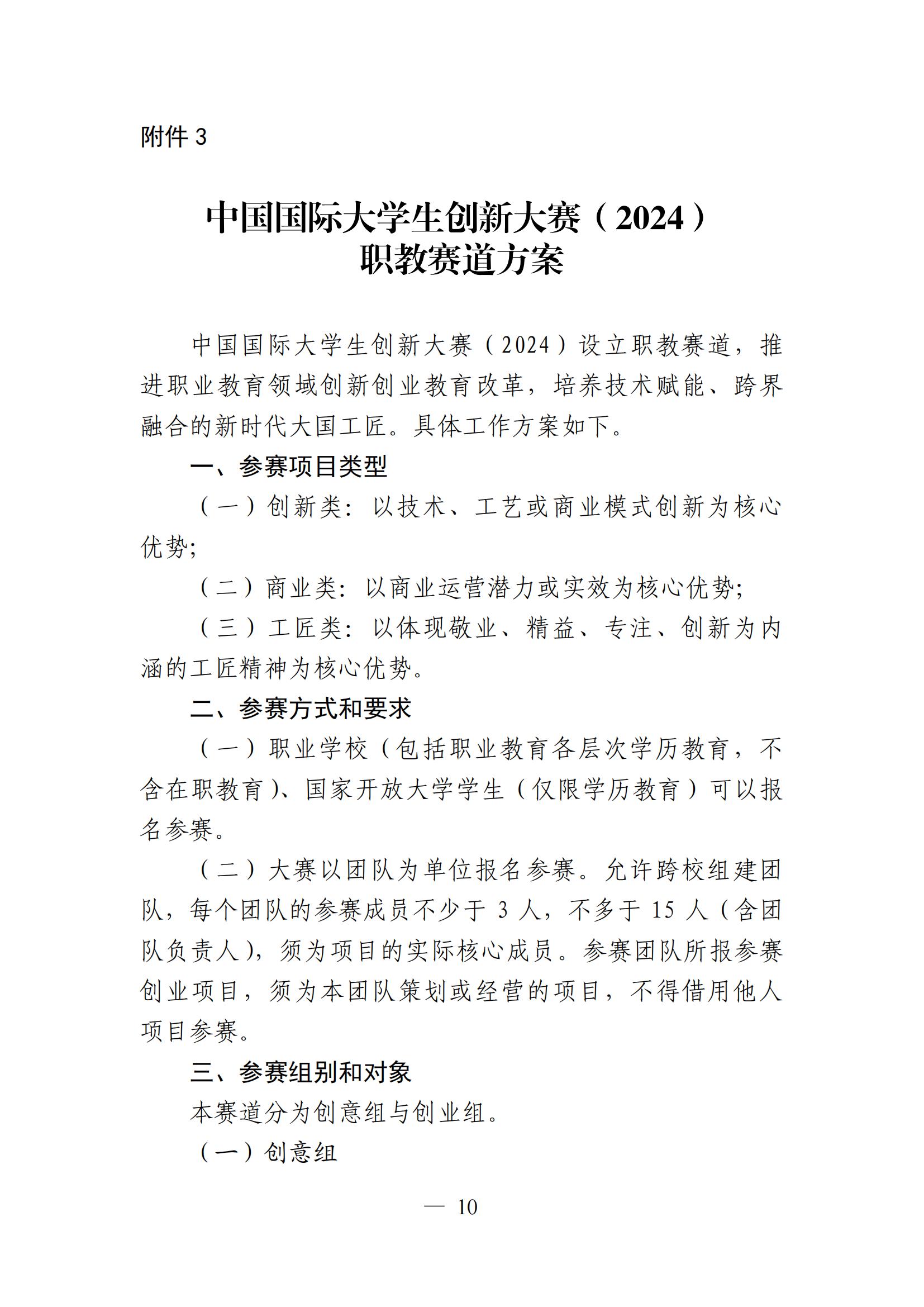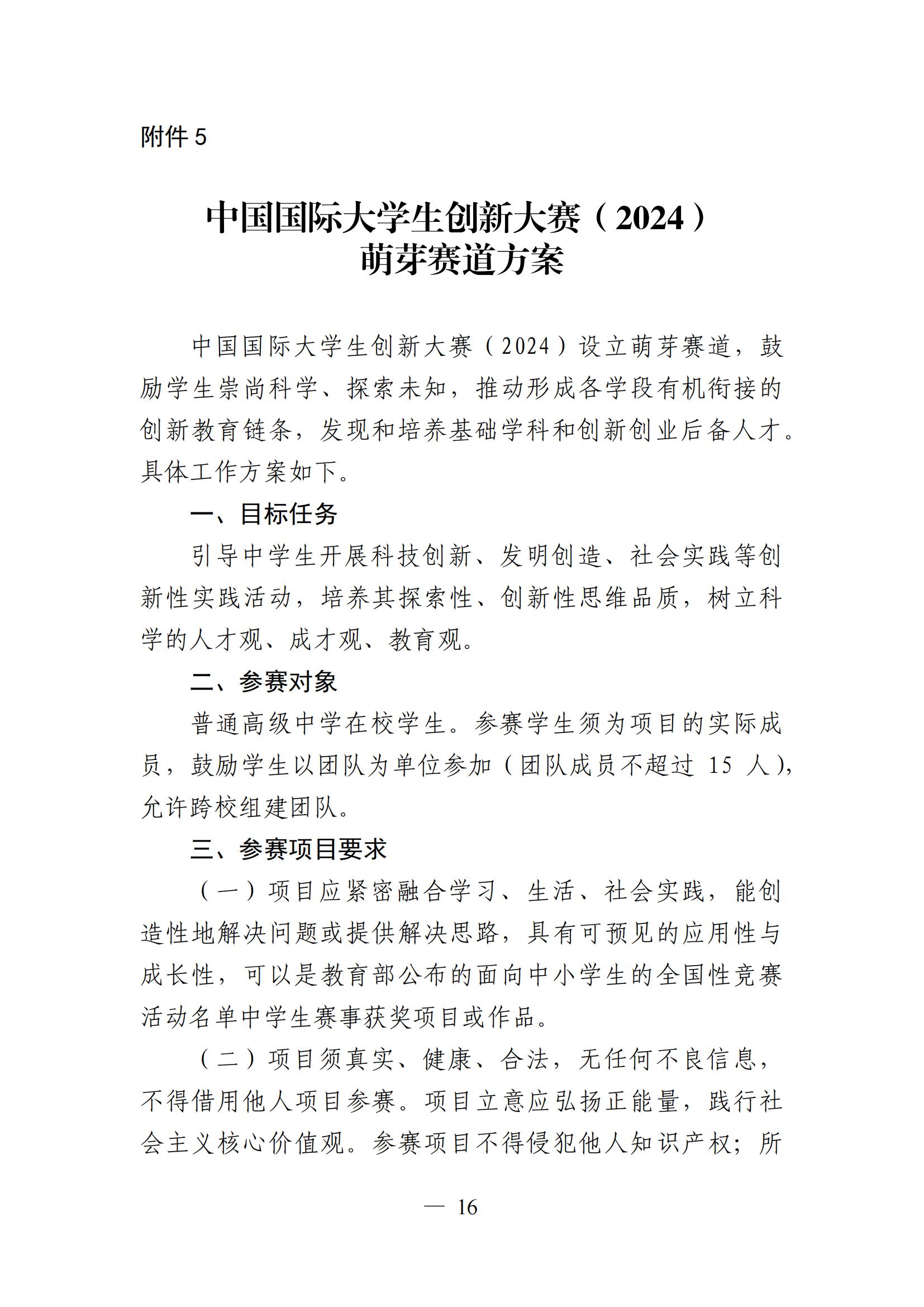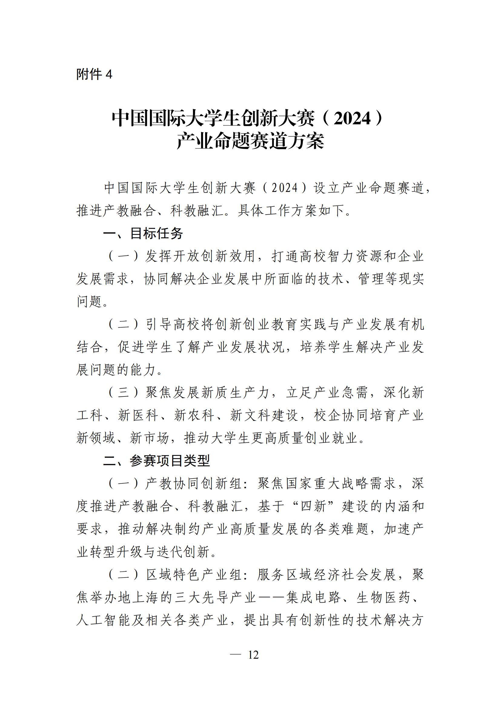 教 育 部 关 于 举 办 中 国 国 际 大 学 生 创 新 大 赛 ( 2024) 的 通 知