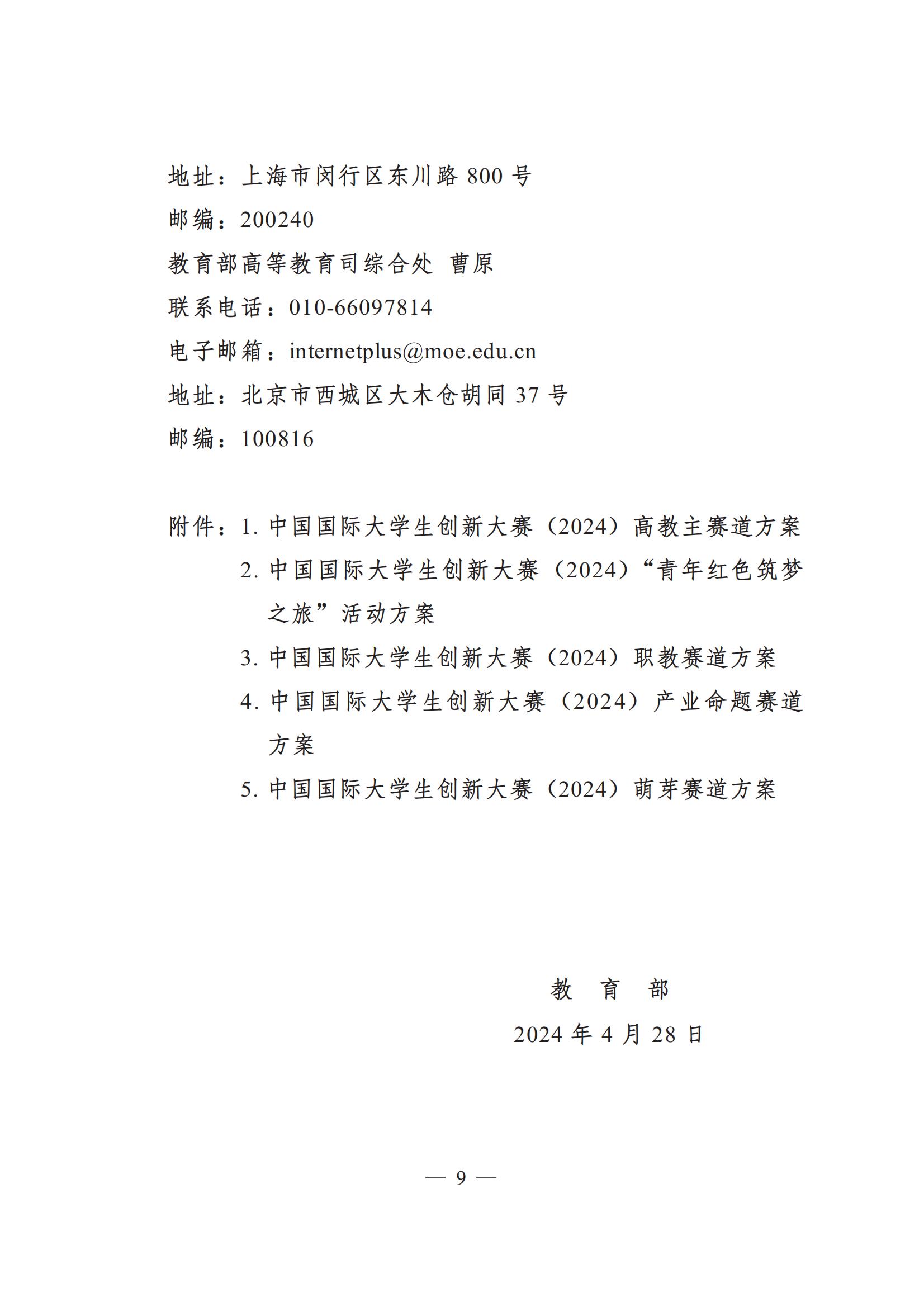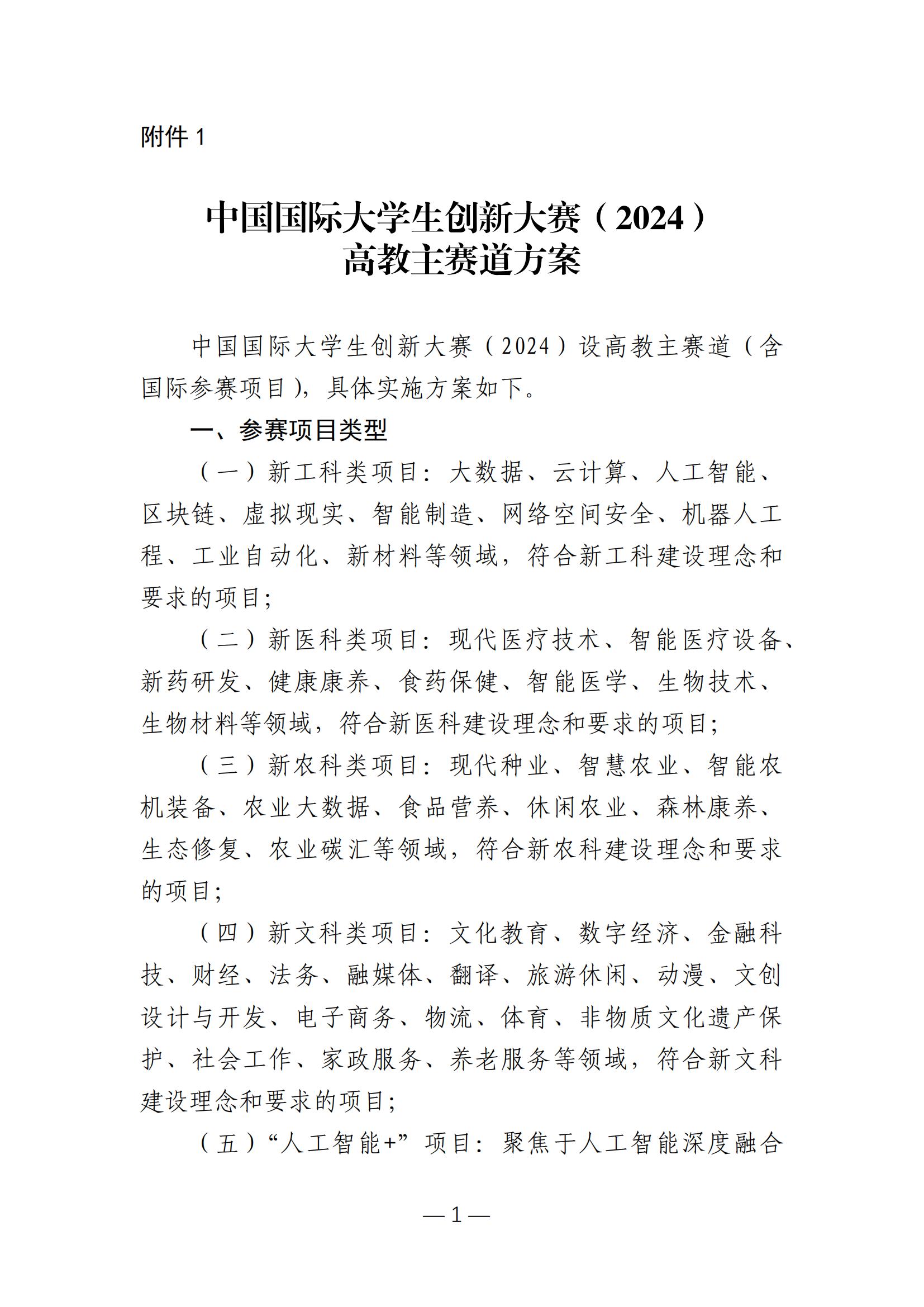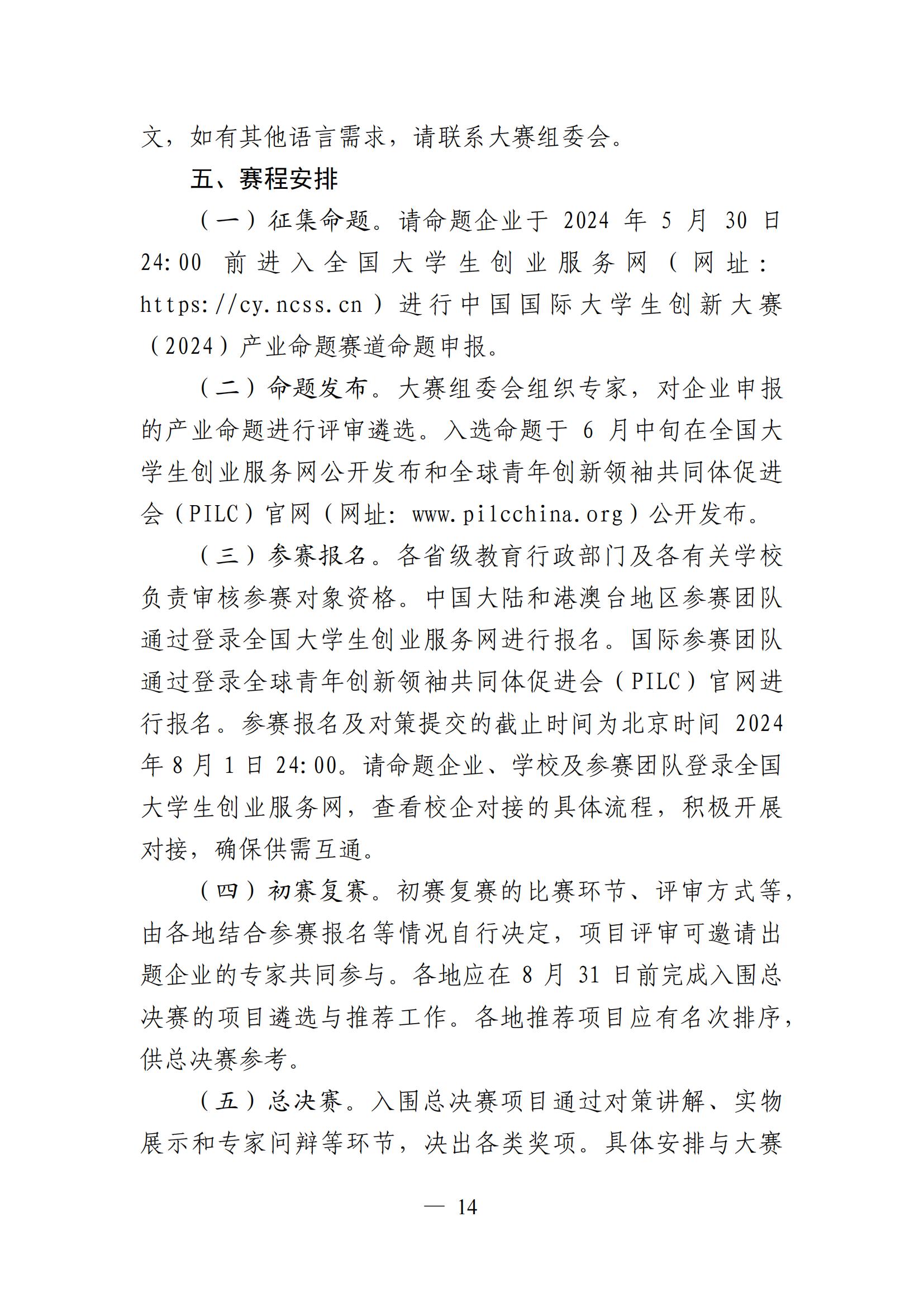 教 育 部 关 于 举 办 中 国 国 际 大 学 生 创 新 大 赛 ( 2024) 的 通 知